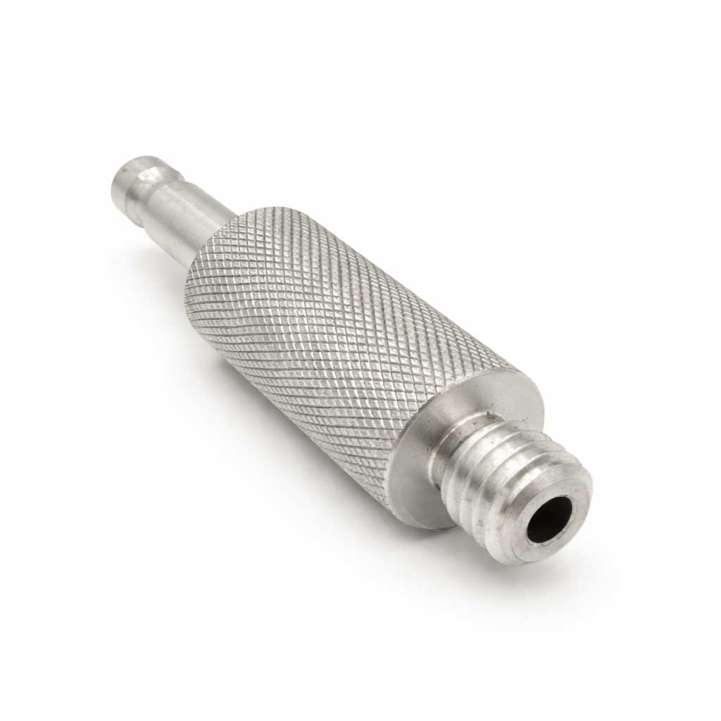Adapteren er produsert i aluminium med rillet overflate for godt grep ved montering og demontering. Leica-toppen er utført i rustfritt stål for høy slitestyrke og lang levetid.
