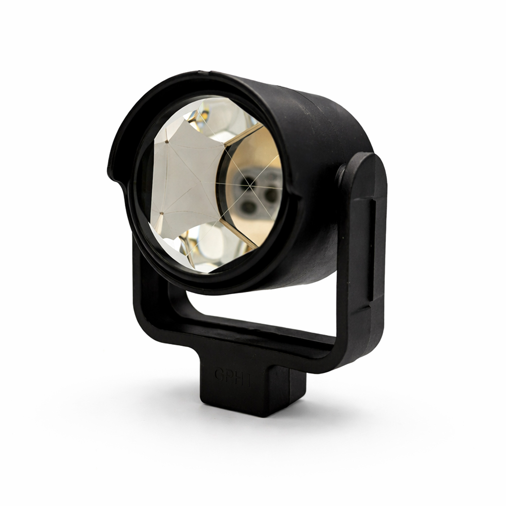Rundprisme kompatibelt med Leica-systemer, tilsvarende Leica GPH1 og GPR1, men med sølvfarget speilbelagt prisme i stedet for standard kobberfarget belegg. Dette gir optimal ytelse ved bruk med Trimble Robotic totalstasjoner.